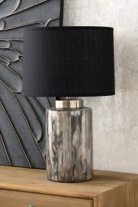 W ten trend doskonale wpisuje się np. lampa stołowa Arcade (Miloo Home), z bawełnianym abażurem i ceramiczną podstawą, ozdobioną grafiką z przetworzonym wzorem moro. Za sprawą odpowiedniego doboru barw (ciemnego matowego złota, szarości, czerni) oraz pionowego kreskowania model ten budzi skojarzenia z korą drzew, a jednocześnie ma nowocześnie klasyczny, elegancki charakter.