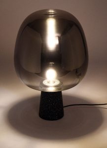 We wzornictwie nie od dziś wiele tendencji rozwija się na zasadzie przeciwieństw, także w sferze oświetlenia. Z jednej strony więc chętnie chowamy źródła światła w kloszach ze szkła mlecznego, które po zapaleniu dodają miękkości i ciepła. Z drugiej jednak wzbogacamy źródła światła o klosze ze szkła dymionego, które wyraźnie zaznacza się na tle ściany czy sufitu, ale po włączeniu odsłania np. dekoracyjne żarówki tzw. edisonowskie, z widocznymi „żarnikami”. Przykładem może być lampa stołowa z serii Flame, w której lustrzane dymienie daje nieco nierzeczywisty efekt.