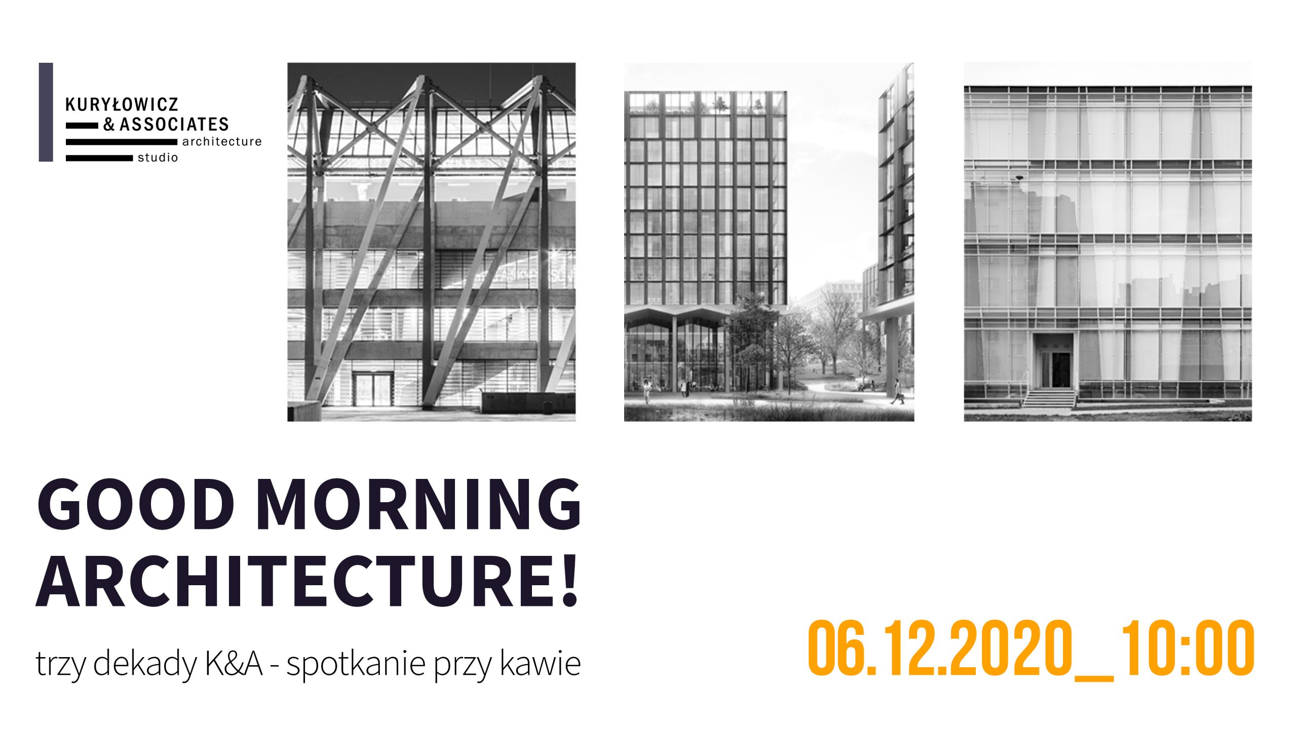 Pracownia Kuryłowicz&Associates, zlokalizowana w sercu warszawskiej dzielnicy Saska Kępa, jest miejscem pracy dla ponad 60-ciu architektów. Z tego miejsca w najbliższą niedzielę transmitowane będzie „na żywo” spotkanie „Good Morning, Architecture”. W wydarzeniu wezmą udział m.in. znana krytyk architektury Ewa Porębska oraz Ivan Blasi, koordynator międzynarodowej nagrody Miesa van der Rohe. W spotkaniu nie zabraknie oczywiście architektów pracowni Kuryłowicz&Associates, na czele z generalnym projektantem prof. Ewą Kuryłowicz. Moderatorem i prowadzącym transmisję będzie Marcin Szczelina, kurator architektury.
