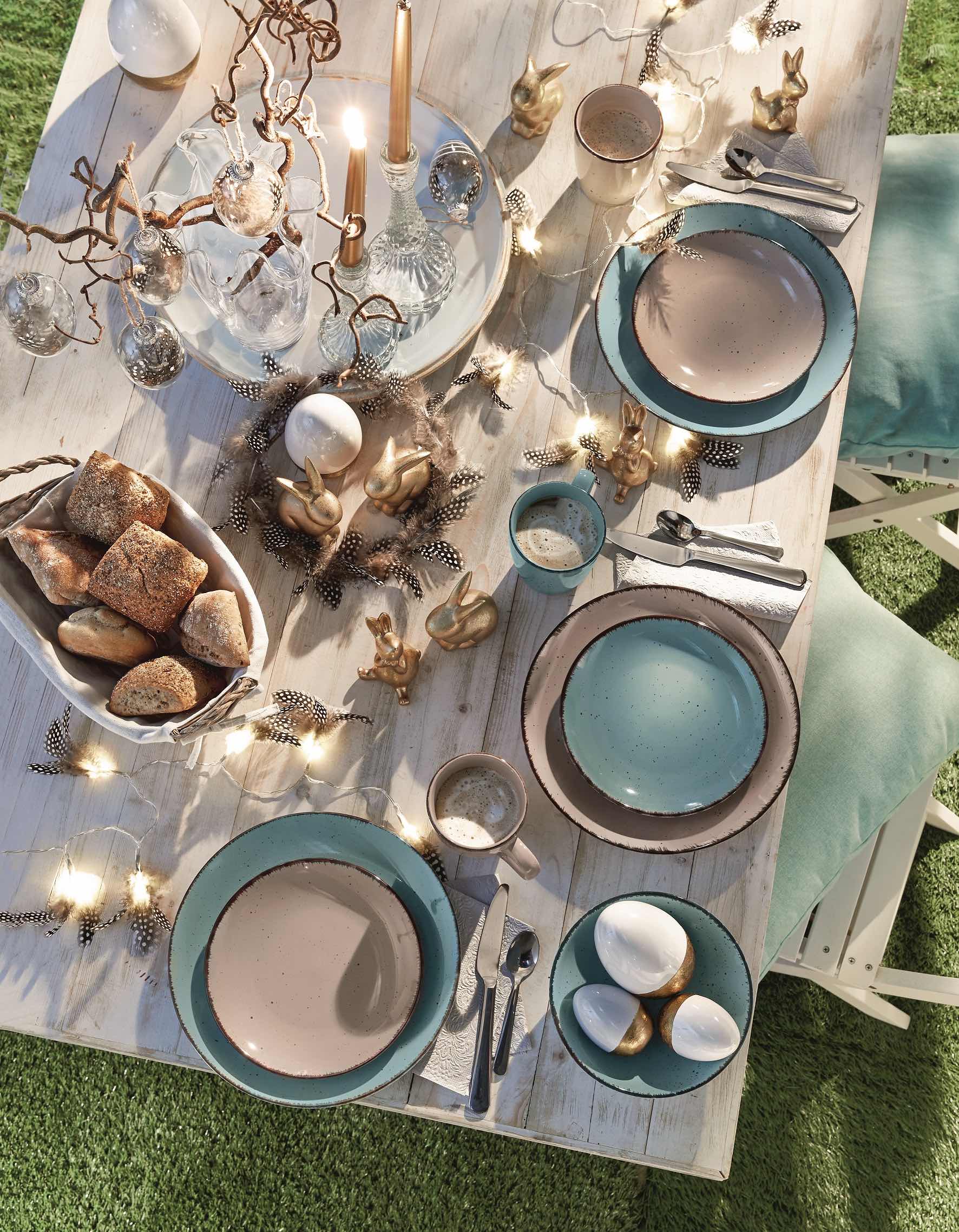 – W tym roku Wielkanoc wypada w połowie kwietnia, jest więc szansa, że będzie ciepło i słonecznie. Jeśli mamy do dyspozycji ogród, warto rozważyć organizację świątecznego śniadania czy obiadu na świeżym powietrzu. Jeśli jednak pogoda nie będzie sprzyjała i tak warto rozważyć wiosenną, naturalną aranżację stołu. Tu kluczowe są materiały, po które sięgniemy – drewno, len – a także paleta barw ziemi – beże, brązy, zielenie. Lekkiego błysku mogą nadać dodatki – np. w odcieniach klasycznego lub różowego złota. Do tego niefarbowane jajka, piórka, gałązki i sznur światełek w jednym kolorze, by dodać aranżacji odświętnego charakteru. Idealnie uzupełni ją rustykalna zastawa – biała, brązowa, a nawet i niebieska – tłumaczy dekoratorka związana z marką KiK.