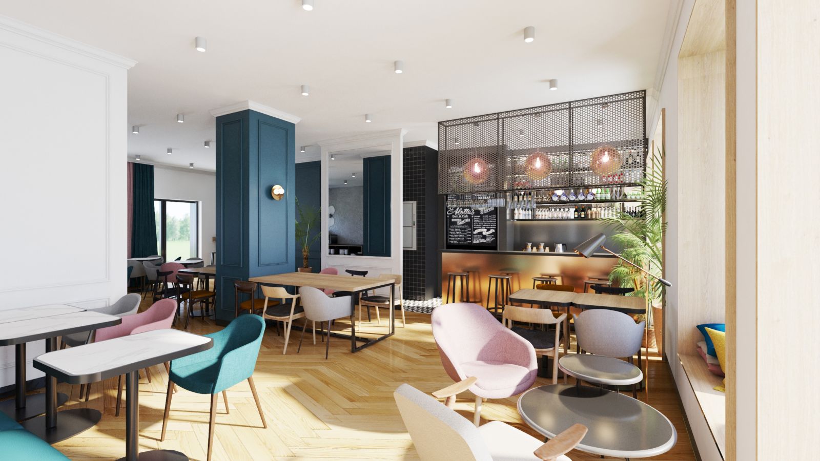 Inwestorowi zależało na tym, by wnętrza trafiły w gusta miłośników designu. W efekcie powstała nowoczesna, kolorowa przestrzeń, dostosowana do oczekiwań współczesnych gości. Projekt stworzono z myślą o pobytach długoterminowych – apartamenty zostały wyposażone w aneksy kuchenne. Nie brakuje tu również stref coworkingowych oraz sal konferencyjnych. Goście będą także mogli korzystać z całodobowej recepcji z lobby oraz restauracji z barem.