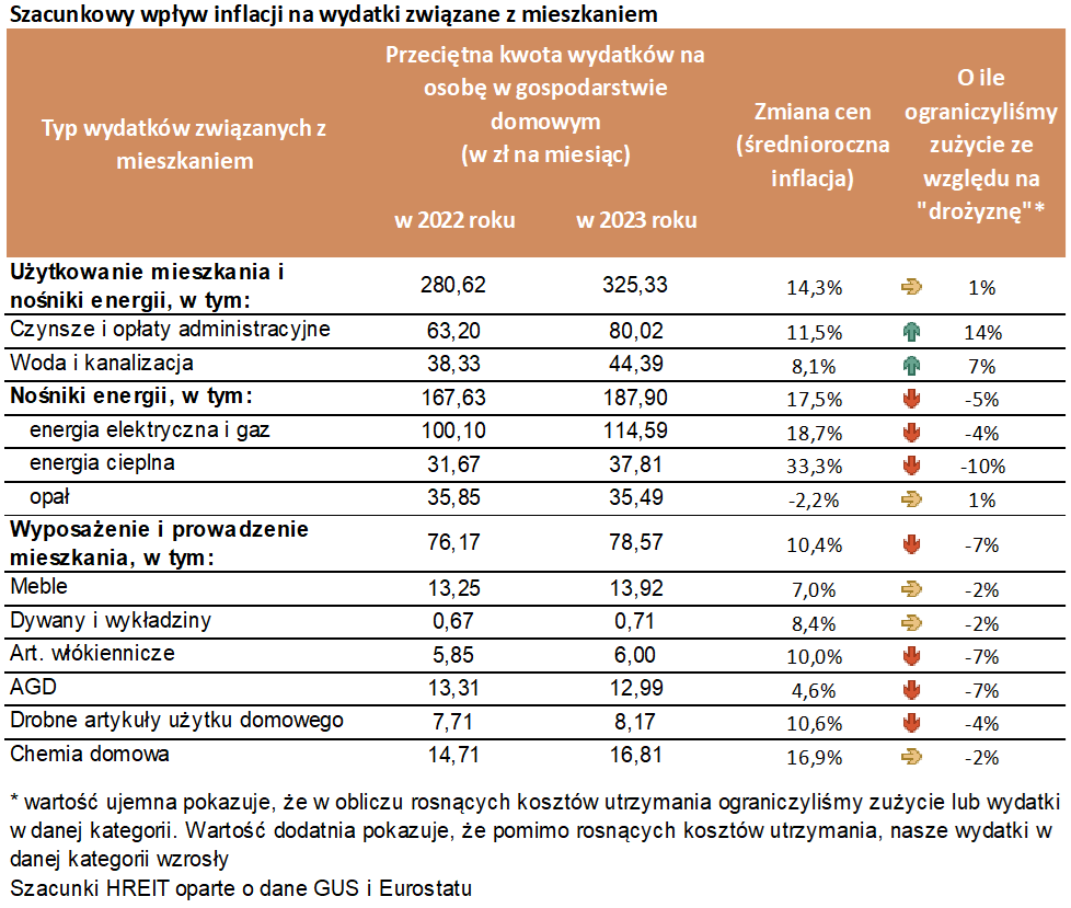 W podobnym stopniu cięliśmy wydatki na dywany i wykładziny oraz meble. W większości przypadków podwyżki cen spowodowały, że tylko trochę ograniczyliśmy popyt na te elementy wyposażenia mieszkań, ale w niewielkim stopniu taki efekt jest widoczny w danych GUS na temat wydatków gospodarstw domowych – wynika z szacunków HREIT.