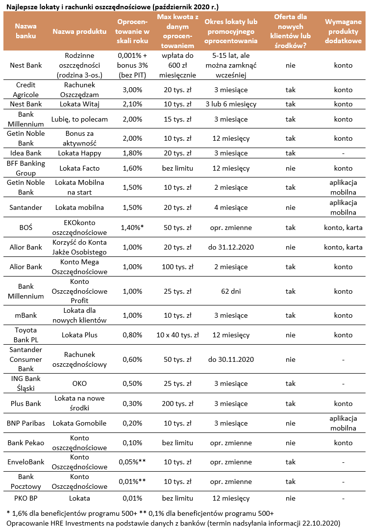 Nie zmieniło się to, że najlepsze oferty są obarczone dodatkowymi ograniczeniami. Najczęściej są dedykowane dla nowych klientów, można dzięki nim powierzyć pieniądze na określony czas (np. 3 miesiące), mamy górną granicę atrakcyjnie oprocentowanej kwoty (np. 10-20 tys. złotych), a do tego często musimy założyć w banku konto, wyrobić sobie kartę i aktywnie z tych produktów korzystać, aby uniknąć opłat. Dlatego warto dokładnie czytać regulaminy promocji, aby mieć pewność, że faktycznie na danej ofercie skorzystamy.
