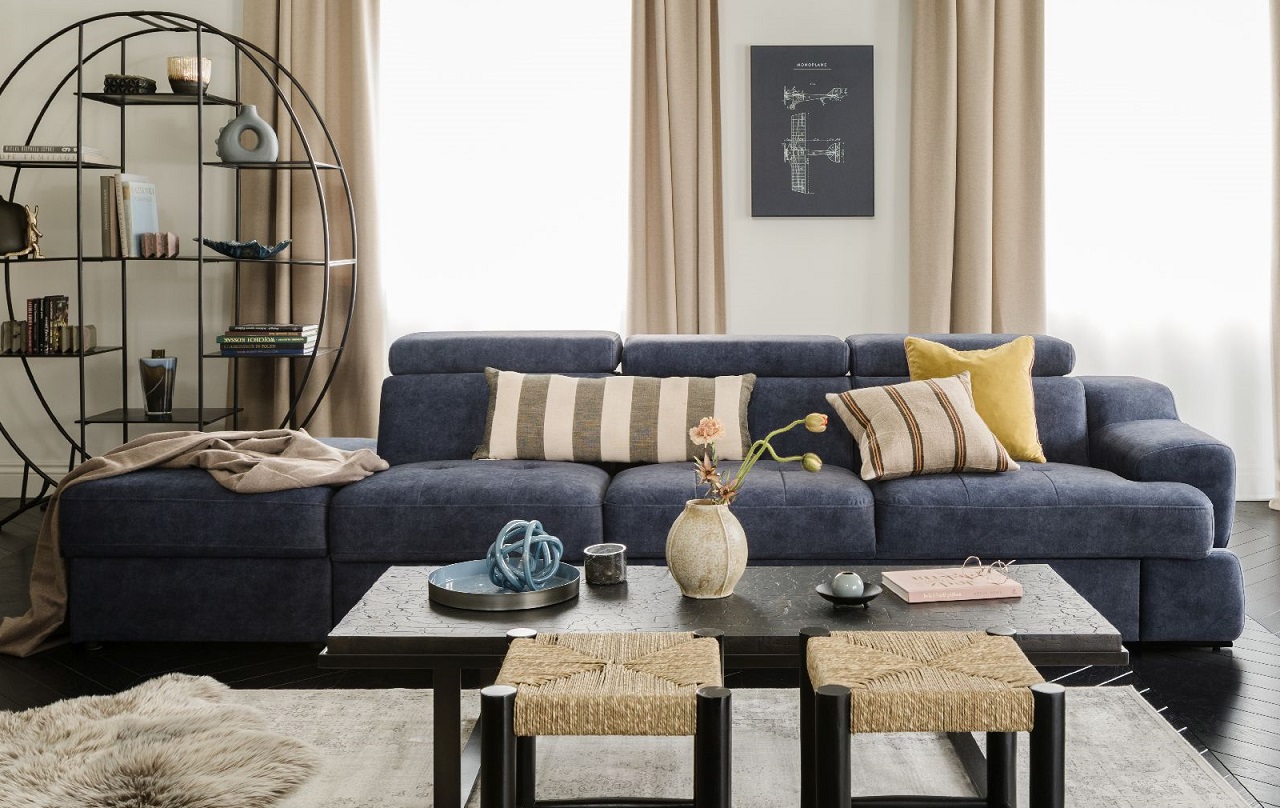 Jak wykorzystać nawiązania do klimatu Hamptons w salonie? Zainwestuj w granatową, błękitną lub niebieską sofę. Gala Collezione, specjalizująca się w produkcji narożników, mebli modułowych, sof i foteli, oferuje każdy kolor tapicerowania we wszystkich swoich meblach. Granatową sofę zaaranżujesz w dwojaki sposób. Zakładając, że to właśnie obicie będzie elementem wystroju o najintensywniejszej barwie, czynisz kącik wypoczynkowy głównym bohaterem wystroju. Dobierz wówczas neutralne tło i dodatki. Jeśli nie boisz się kolorów, możesz postawić na niebieski total look i zestawić ze sobą różne odcienie błękitu. Do granatowej kanapy będą pasować nie tylko biele i szarości. Barwa tapicerki pięknie skomponuje się również z żółtym, pomarańczowym i koralowym, a bardzo elegancki duet stworzy z kolorem różowym.